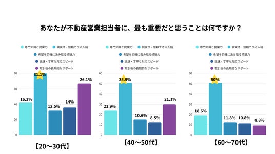 20~30代は「スピード」も重要視。60~70代は“人柄”一本。
