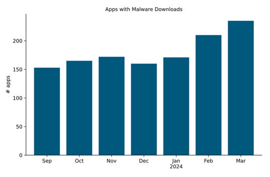 ネットスコープがマルウェアのダウンロードを検出したアプリの数は大幅に増加し、過去最高の235種類に達しました。
