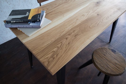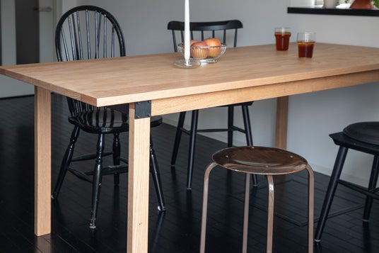 『木と鉄のテーブル脚』は、家具で人気な樹種であるレッドオークの無垢材を使用しており、力強い木目が他の家具や空間に負けない存在感を放ちます。オークは家具では定番の樹種ですが、組み立て式のテーブル脚となると、ほとんど選択肢にありませんでした。