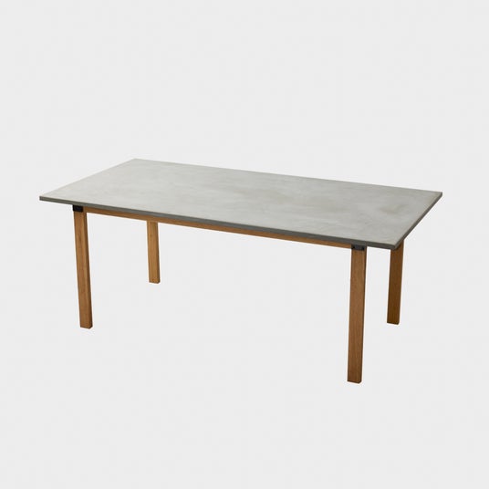 テーブル脚自体が木と鉄という異素材ミックスで構成されているので、異素材の天板と組み合わせるのもおすすめ。当社では、別の樹種や合板、モルタルの天板、寄木の天板など約90点のテーブル天板を取り扱っています。他にも人気の自然素材であるリノリウム天板など、別途天板を用意することで、自分好みのダイニングテーブルをつくることができます。