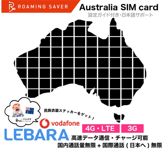 Lebara物理SIM版 オーストラリア SIMカード【高速データ通信・チャージ可能・現地の電話番号付き】4G(LTE)高速データ通信/国内通話量無制限/国際通話(日本へ)無制限