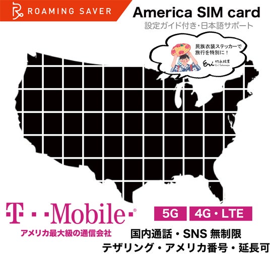 T-Mobile物理SIM版 アメリカ・ハワイ ・カナダ・メキシコSIMカード【無制限使い放題・チャージ可能・現地の電話番号付き】5G・4G(LTE)高速データ通信/国内通話/SMS/テザリング