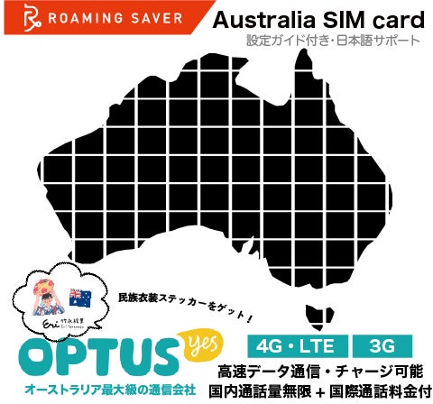 OPTUS物理SIM版 オーストラリア SIMカード【高速データ通信・チャージ可能・現地の電話番号付き】4G(LTE)高速データ通信/国内通話量無限/国際通話