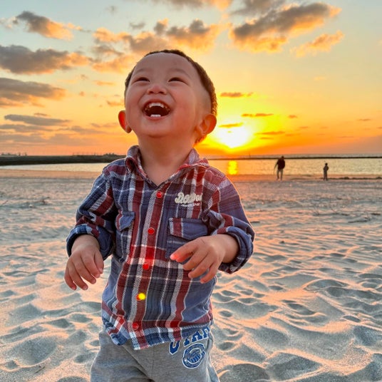 「ビーチでの砂遊びに興奮して、目線の先にいるご両親(?)にその楽しさを伝えようとする表情が素敵ですね。どんなことが楽しかったのか、こちらからも聞いてみたくなるような感情豊かな1枚です。」