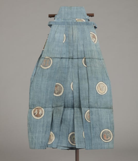 出品作品2.「浅葱麻地丸紋散らし模様半袴 江戸時代・19世紀」
