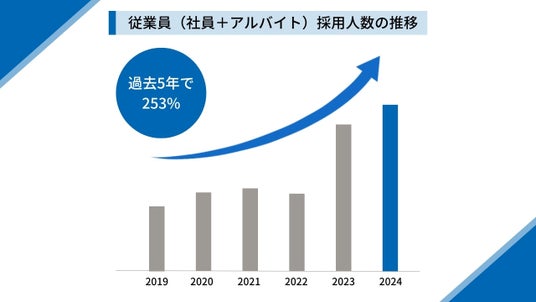 こうした状況を受け、当社では採用体制を見直し、積極的な人材投資を進めてきました。従業員の待遇改善やリファラル制度の拡充、企業広報・ブランディングの強化など、多角的な施策を推進してきた結果、2024年度は正社員・アルバイトを含めた従業員数の純増数においても過去最高を記録しています。
