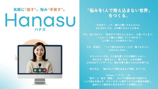 Actors合同会社(本社:東京都渋谷区)は、個人および企業・団体向けのオンラインカウンセリングサービス「Hanasu ハナス」を正式に提供開始しました。
