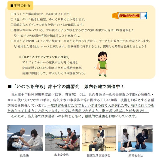 万が一「アナフィラキシーショック」になったら…。赤十字がその手当の仕方を紹介します。