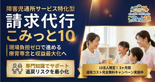放課後等デイサービス・児童発達支援ブランド「ウィズ・ユー」を展開する有信アクロス株式会社(本社:大阪府吹田市、代表取締役:原田 健市、以下「当社」)は、2026年5月より、障がい児通所サービスに特化した請求代行新事業「こみっと10(コミットテン)」を開始いたします。
