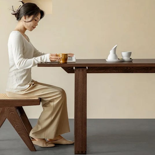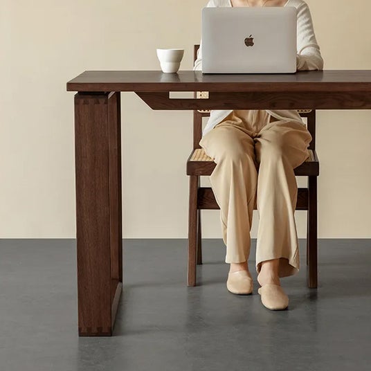 美しい木目と深みのある色合いを持ち合わせた天然木を使用し、上品な雰囲気が漂うダイニングテーブル。脚の位置は2段階で調整可能なので、座り方に合わせて最適な配置ができます。シンプルでありながら強靭な作りが特徴で、長く愛用できる一品です。