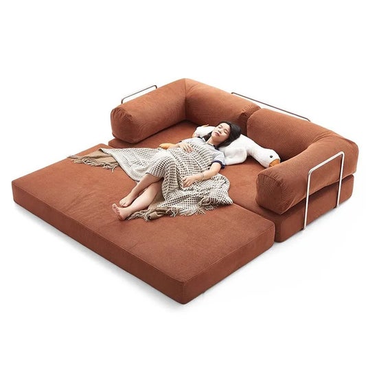 高密度高反発ウレタンを用い、快適な座り心地と寝心地を提供する優秀なアイテム。高品質のコーデュロイ素材で、優れた触感と耐久性を誇ります。ソファとしてもベッドとしても使え、シーンに合わせて自由な組み合わせが可能に。ロールパッケージで届くので、エレベーターや玄関に簡単に搬入できるのも嬉しいポイントです。