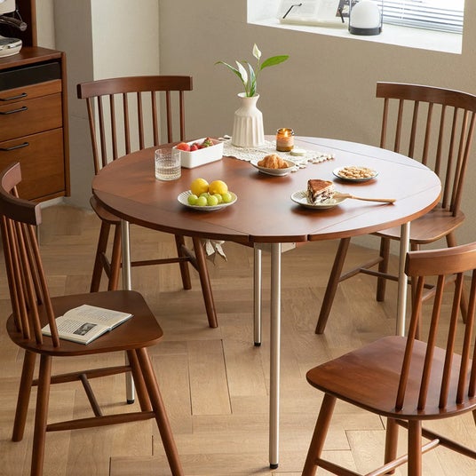 ツゲ材 伸長式木製ラウンドテーブル