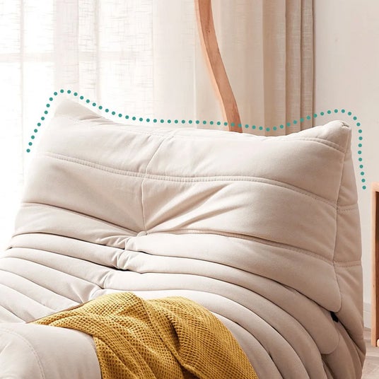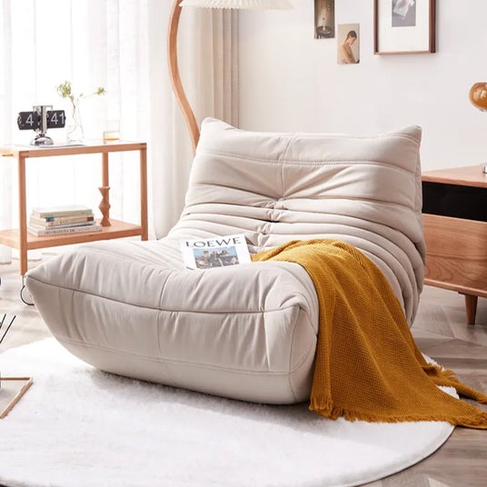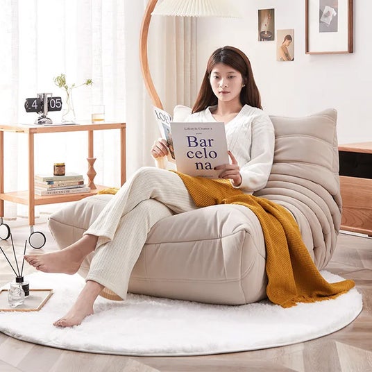 高反発ウレタンを使用したプリーツデザインのシングルソファ。包み込まれるような座り心地で、長時間座っても疲れにくい設計です。125°の背もたれ角度が背中と腰をしっかりサポートし、足を自然に伸ばせるため、リラックスした姿勢でくつろげます。