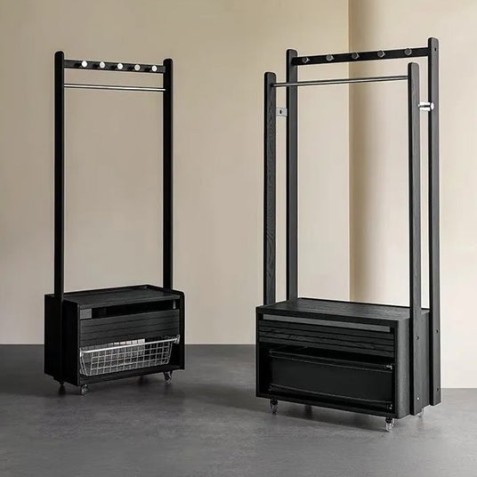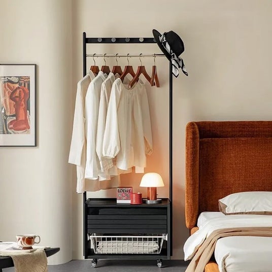 漆黒のクールなデザインが特徴で、しっかりとした耐久性と高い耐荷重を誇るハンガーラック。ハンガー収納とたたみ収納の両方が使えるため、効率よく収納できます。広い天板はナイトテーブルとしても活用でき、使い勝手も抜群です。さらに、キャスター付きで移動も簡単に行え、どんなお部屋にもぴったりフィット。