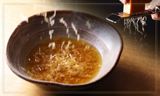 柔らかな和牛のレアカツに添えられるトリュフ。繊細な火入れで引き出された旨味と香りが絶妙に重なり合い、奥深い香りを纏う贅沢な一品です。