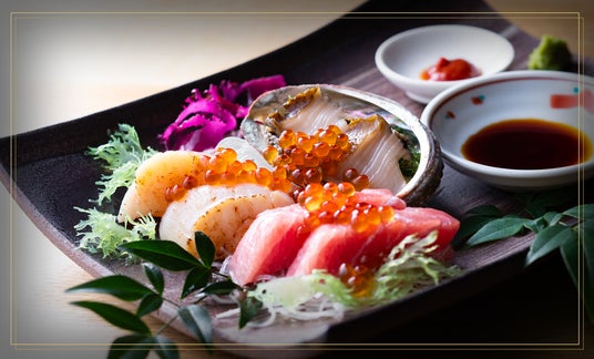 - 鮑・ホタテ・マグロの豪華刺身にイクラの彩りを添えて -