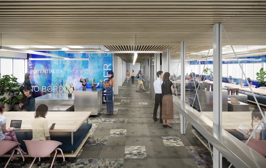新たな価値創出をする多領域越境デザインユニット。代表の塩島氏は、前職の日建設計在籍時、バルセロナに駐在しFCバルセロナのスタジアム改修計画においてインテリアデザインチームのリーダーを担当。グローバルな視点と体験(UX)を重視した空間設計のノウハウが、本校舎のデザインに注ぎ込まれています。