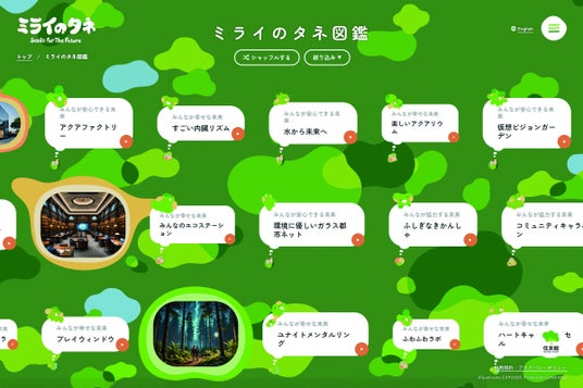 「住友グループの数えきれない技術や取組み」をもとに、人類が直面する共通課題の解決や豊かな未来社会づくりへの想いを込めて創出されたアイデア「ミライのタネ」。会期中に参加いただいた皆さまによっておよそ1万件の「ミライのタネ」がつくられ、世界中に公開されました。これらのデータは、およそ700件の「住友グループの技術や取組み」と共に課題解決や豊かな未来社会の実現を目指す貴重な記録としてアーカイブ化されます。アーカイブ化の準備が整い次第、住友グループ広報委員会が運用するWEBサイト内の新設ページとして公開いたします。