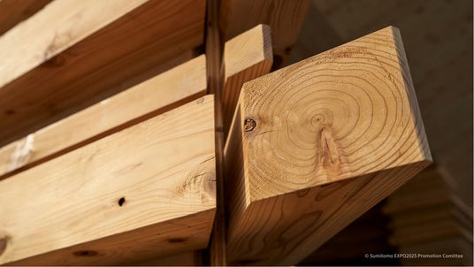 また、数世紀にわたって継承されてきた住友の森の木々を活用した住友館の建築材は、植林体験の苗木を未来に向けて育む『いのちの森』の看板としても活用を予定しています。加えて、住友グループ各社それぞれが保有する施設の意匠材としての活用や、異なるプロダクトとして再活用するプロジェクトの検討を進めてまいります。