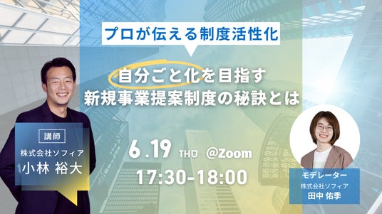 株式会社ソフィア(東京都港区麻布十番、代表取締役:廣田拓也、以下ソフィア)は『自分ごと化を目指す新規事業提案制度の秘訣とは ~プロが伝える制度活性化~』と題し、無料セミナーを開催します。