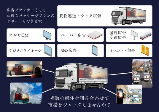 複数メディアのシームレスな統合提案が可能に、トラック広告だけでなく、屋外・交通・デジタル・マスメディアを含むメディアミックス提案が可能に。