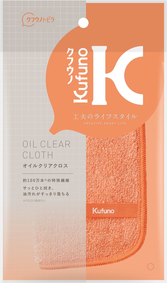 【クフウノ オイルクリアクロス】は、水に濡らして拭き取るだけ。約100万本(クロス1枚あたり)の特殊繊維でできており、キッチン周りやテーブルに付着している油汚れ、水分、食べかすを一度でしっかりと拭き取ることができます。また、拭き終わったあとのクロスに付着した汚れも水洗いだけで簡単に落ちるため、クロス自体にヌメリが残りにくいのが特徴です。さらにクロスに抗菌加工を施しているので、ニオイも気になりづらく、使い心地のよいクロスです。これ1枚で、キッチンがいつもキレイに保てます。