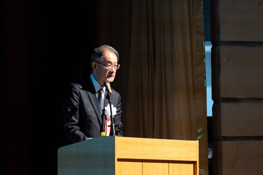 来賓祝辞を述べる(株)アマダの山梨貴昭代表取締役社長執行役員