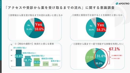 株式会社APOSTROは、全国1,000名を対象に、医療機関へのアクセスや受診から薬を受け取るまでの流れに関する意識調査を実施しました。