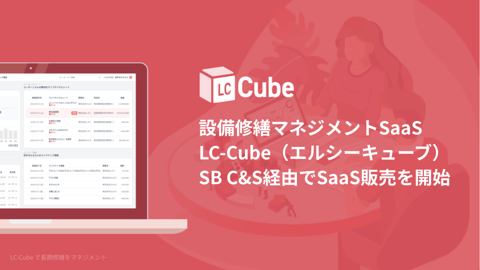 長期修繕設備保全サービス「LC-Cube」を提供するビズキューブ・コンサルティング株式会社(以下:当社)は、ソフトバンクのグループ企業でIT流通ビジネスを担うSB C&S株式会社(以下「SB C&S」)が販売パートナー契約を締結し、「LC-Cube」のSaaS販売を開始します。