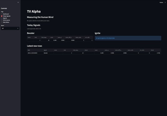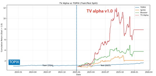 「TV Alpha」は、従来の金融モデリングの延長ではなく、TVメタデータという非金融データ領域において、AIが市場に影響を与える新しい構造を発見する試みとして開発されました。