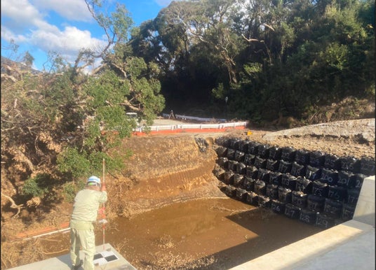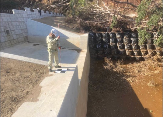 本取り組みは、八丈島・大里一の沢における土砂崩れ災害に伴う、民家倒壊防止対策の砂防工事において実施されたものです。