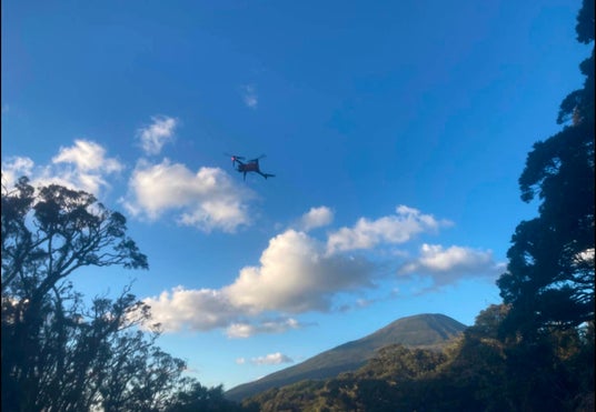 八丈島の砂防工事において、従来2日・6名の測量を0.5日・3名に効率化