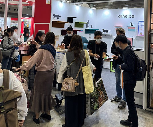 4日間で6万名以上が来場した本イベントにおいて、arneco(アーネコ)ブースでは新作の窓付きキャットタワーやペットソファの初公開や、LINE友だち登録キャンペーンを実施。