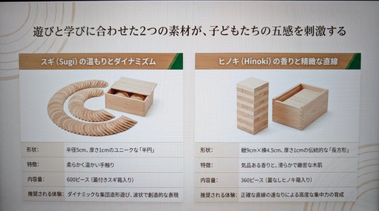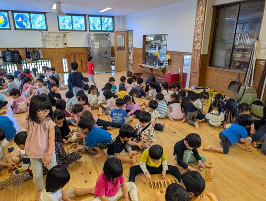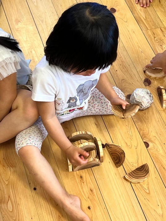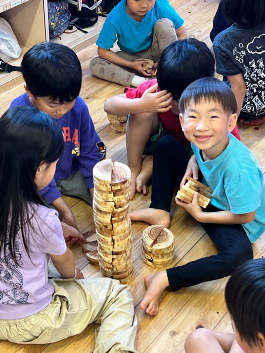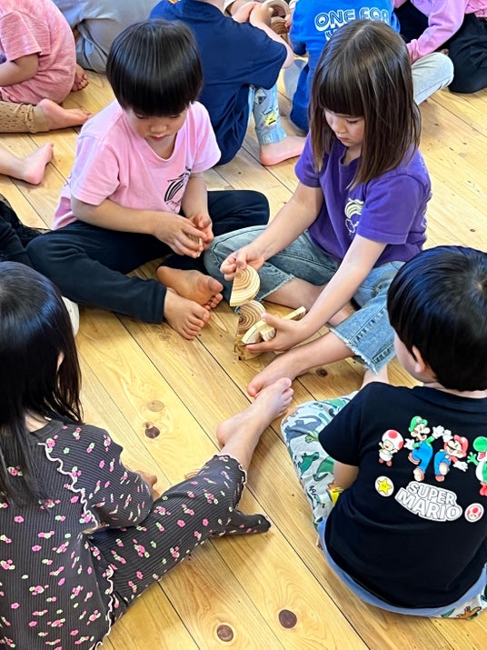 弊社は、2026年4月、熊本市の「やまなみこども園」へ、スギの「年輪ドミノ600ピース」を寄贈いたしました。現場の保育士からは「遊んで学べて、とても良い教材。園児たちのリアルな笑顔と熱気こそが本物の証拠」と高い評価をいただいております。