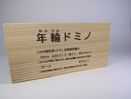 <ウッドブロック(裏面):炭素固定量等を表示>