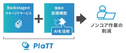 日本における2030年IT人材不足問題(※2)は、プラットフォームエンジニアリング(後述参考情報に詳細記載)の概念をもとに考えると、開発生産性の問題として捉えることができます。具体的には、システム開発における補助的な業務(ノンコア業務)を効率化し、エンジニアの開発生産性を最大化することが有力な解決策の一つとして挙げられます。しかし、いざプラットフォームエンジニアリングを始めようとしても、チームの構築やツール選定、運用方法の検討やトレーニングなど多くのステップがあり、二の足を踏んでいる企業が多いのが実態です。このような実態を受け、当社ではプラットフォームエンジニアリングを開始するためのツール導入からチーム構築、セルフサービス化までを支援する新サービス「PlaTT」の提供に至りました。本サービスは、開発者ポータルBackstageが最短1日で導入でき、さらにAIを組み込んだ独自プラグインやテンプレート、トレーニング等のコンテンツをすぐに利用することもできます。また、プラットフォームチームの構築からセルフサービス化の実現までの一気通貫の並走支援も可能です。これらにより、プラットフォームエンジニアリングに取り組める環境を素早く構築する事が可能となり、ノンコア業務を削減し開発生産性の最大化につながります。なお、開発者ポータルBackstageのマネージドサービスの提供は、国内初となります(2024年7月時点当社調べ)。