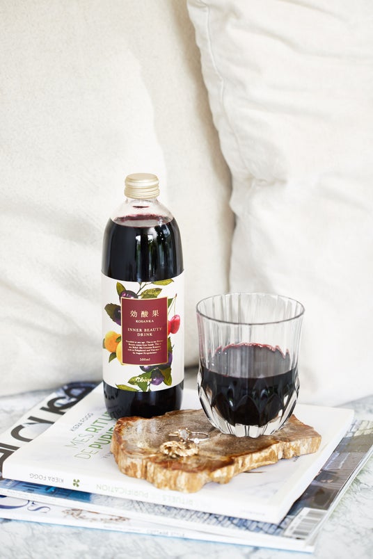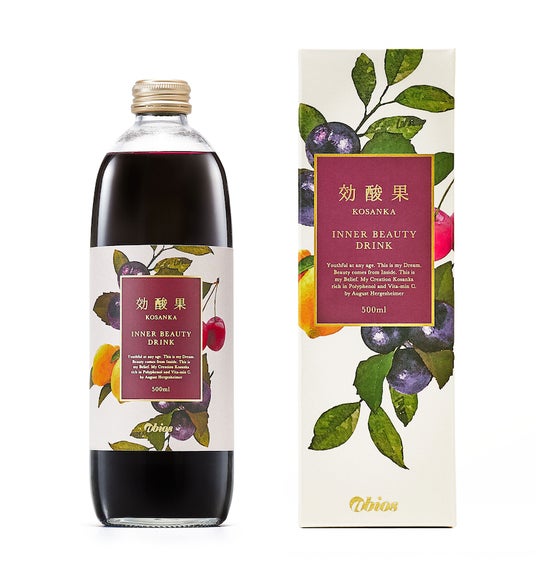 「効酸果」は、アビオス代表でもある栄養学博士、オーガスト・ハーゲスハイマーが原料にこだわり抜いて開発。高ポリフェノール含有率が知られるアサイー濃縮エキスを75%以上、ビタミンたっぷりのサワーチェリー濃縮果汁とレモン果汁を黄金比で加えたオーガニックビューティードリンクです。