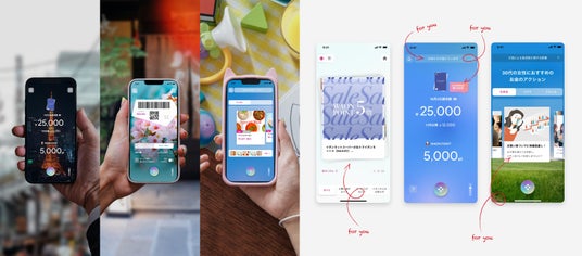 支払いアプリやクーポンアプリなどに対して、1300人のユーザーリサーチの利用実態調査を通じ、今までの体験の中でストレスを感じる部分や潜在ニーズを洗い出しました。情報が多すぎることによって本当に必要な情報の見落としが生じたり、複雑なことで使いづらさを産んでいる部分を解消するために、シンプルなデザイン思想を基軸に、ユーザーが必要に応じて情報や機能をカスタマイズできるアプリ設計を採用しています。個々のユーザーに合わせてパーソナライズされ、利用する中で学び、アプリの利用や金融に対するリテラシーが向上し、便利に使い続けられる体験を目指しデザインされています。