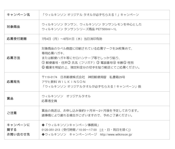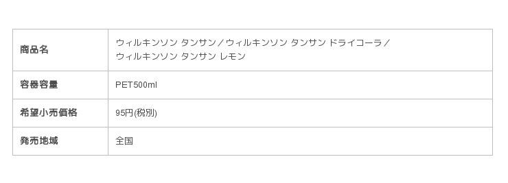 「ウィルキンソン」ブランドの中心となる『ウィルキンソン タンサン』は、2011年4月からPETボトル商品を展開し、“炭酸水の直接飲用”という新しいスタイルの提案を行い、2015年も炭酸水売上No.1(※)を記録し、独自のポジションを確立しています。