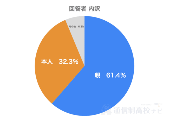 アンケートの回答者は親・保護者が61.4%。入学者が32.3%で、教員などその他の属性が6.3%となっています。