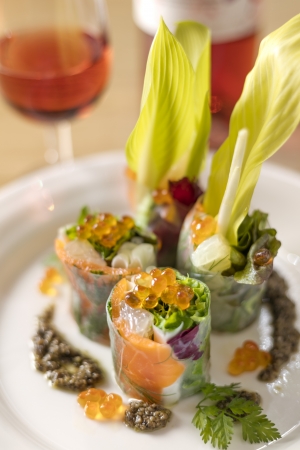 ・信州サーモンとウルイ、グレープフルーツの生春巻き