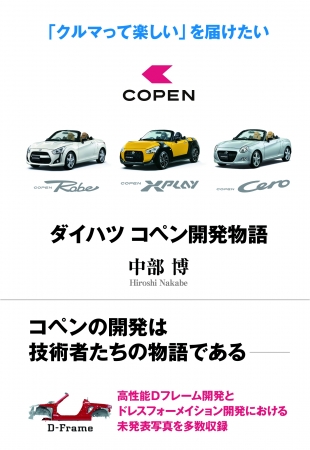 ノンフィクション作家の中部博氏が、「コペン」誕生に関わったダイハツのエンジニア、全国のクリエイターへの2年間にわたる取材を通じて執筆した。18人の登場人物が「コペン」プロジェクトを回顧し、「何に悩み、どう動いたのか」を語る。
