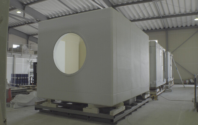 解体前の2022年4月に、再生するカプセルの内装を生け捕りして倉庫に保管しました。その後カプセル内のアスベストを専門業者が除去し、カプセルそのものはスケルトンの状態で再生工場まで運搬されました。搬送は7月後半から始まり、再生される23カプセルすべてを運び終えたのは8月31日でした。カプセルの劣化具合は思った以上にひどく、先行して運ばれたカプセルから外装を補修し、スケルトン状態に先に生け捕りした内装パーツを取り付けていきます。新品のカプセルを1から作るよりも時間と費用のかかる作業です。