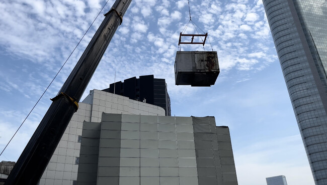 取り外したカプセルを再生する計画は、2020年夏から進められてきました。本来はカプセルを交換することでメタボリズムの実現を目指していましたが、建物の老朽化や資金的な問題、最終的にはコロナの追い打ちにより断念。何とかして歴史的建築物の一部でも後世に残したいとの思いから、管理組合と協力して建物所有者と交渉を続けてきました。解体前に写真や映像で建物の記録を残すことも、当時のオーナーの協力により実現しました。