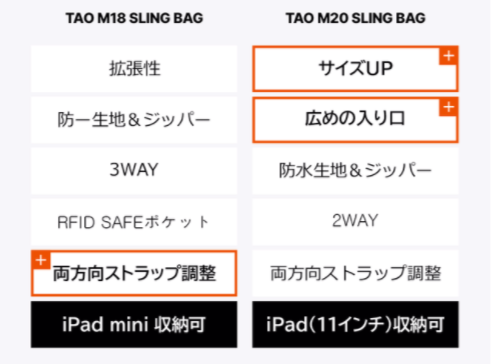 サイズや容量がもう少しあれば…という意見から新しく誕生したぴったりフィットの【TAO M20】