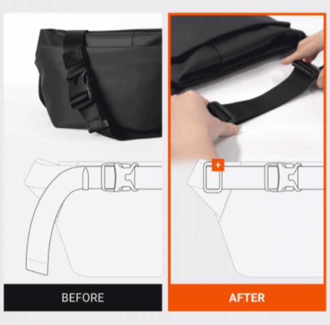 というフィードバックから、ストラップをスッキリ整理できるように長さ調整のアジャスターを追加しました!