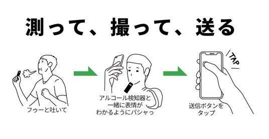 お持ちのアルコール検知器で計測し、結果を『RYOMOBIアプリ』で写真に撮って、送信ボタンを押すだけ。アプリ操作はかんたん、シンプル、わかりやすいを徹底的に追求しました。計測するタイミングは運転する前と後、出勤時や退勤時など、各事業所の運用ルールに合わせて構築できます。スマートフォン用のアプリは、App StoreやGoogle Playから無料でダウンロード可能です。