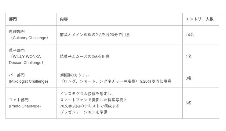 (*) 総料理長、副総料理長、チーフソムリエ、F&B部門責任者および副責任者は、参加対象外となります。