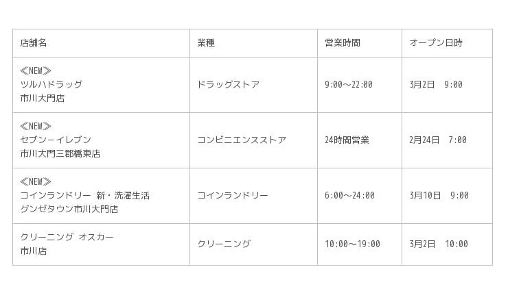 今回のリニューアルでは、ニューショップ6店舗、リニューアルショップ1店舗の合計7店舗が、2月24日以降順次オープンします。現在確定している4店舗に続き、日常に密着した業種を中心に誘致を進め、毎日、便利で豊かな暮らしを実現できる、地域の皆さまに喜ばれる施設として貢献してまいります。