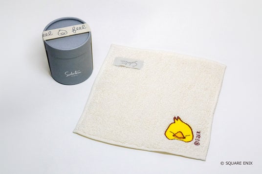 「毎日を冒険にする」一品。洗うほどにふんわり育つタオルに、でぶチョコボ・モーグリ・ナマズオの刺繍を施したオリジナルボックス仕様で登場。
